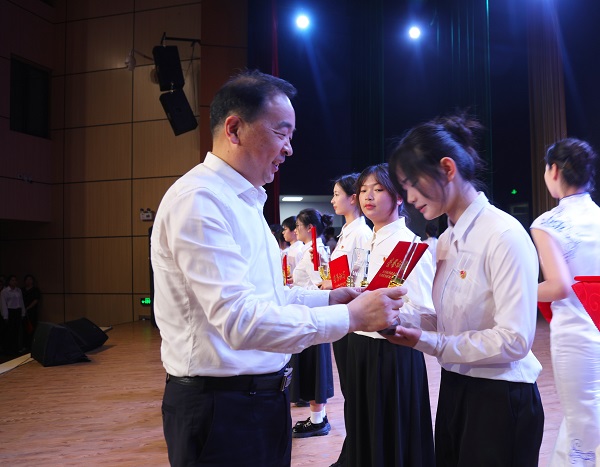 副校长梅重宣读《关于表彰2025年度学生先进个人和先进集体的决定》。龙雨欢、杨雨桐、陈熙等10名同学,以德润心以技强己,在各类竞赛中屡获佳绩,荣获“德技并修标兵”。王志敏、周若琦、潘怡文等10名同学,以卓越的组织能力和亲和力,成为师生心中的桥梁纽带,荣获“团学干部标兵”。靳枫叶、刘超、杨静怡等8名同学,以破茧成蝶的勇气、鲲鹏展翅的想象,让专业知识在创业园落地生根,荣获“创新创业标兵”。吴丹丹、陈燕、郭若涵等10名同学,扎根文化名城,奋斗澴河之滨,铸牢“共同体”、传播正能量,荣获“感恩之星”。教育与艺术学院22010901班、财经与旅游学院23040101班等10个班级荣获“优秀班集体”。医学院23030104班团支部、口腔医学院24150104班团支部等10个团支部荣获“优秀团支部”。