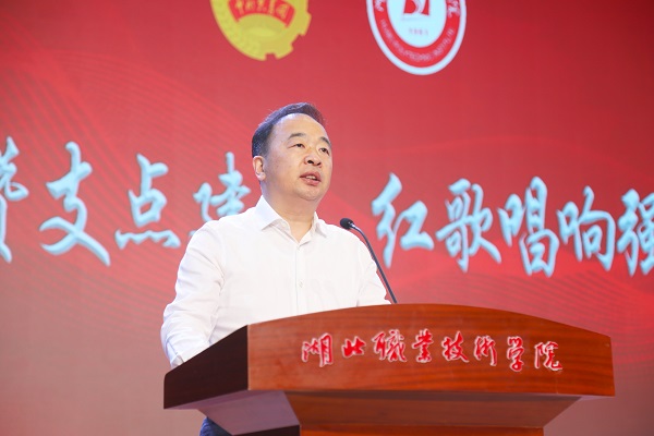 (本网讯 陈灏 冷玖玲 王欣怡)青春生生不息,奋斗永无止境。5月7日下午,学校“湖职群星”表彰大会暨红歌合唱比赛在南校区崇德礼堂隆重举行。学校党委书记郭国文,党委副书记王益贤,副校长梅重、胡昌杰出席活动并为2025年度“湖职群星”颁奖。相关职能部门主要负责人,各教学院党政负责人、分管学生工作负责人、辅导员以及学生代表参加活动。