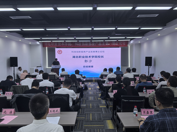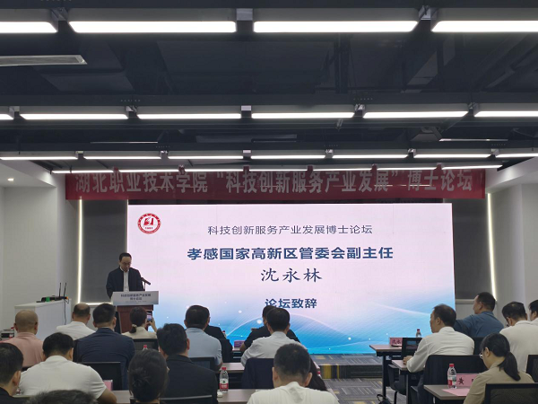 (本网讯 汪文珺 肖嘉里) 9月26日,“科技创新服务产业发展”博士论坛在湖北职业技术学院孝感国家高新区武汉研究院举行。本次论坛以“科技创新与产业融合发展背景下的科研使命与路径探索”为核心主题,出席本次论坛有:孝感国家高新区党工委委员、管委会副主任沈永林,孝感市科技局党组成员、副局长郑金华,孝感市国家高新区党群工作部副部长黄宏丽,湖北省机械工程学会副秘书长揭英诚,学校校长郭沙,科研处处长曾少武,武汉研究院院长龚雄涛及华中科技大学教授、中科院金属研究所研究员、中旋力电机、九壹测控、万维镜像等企业负责人,我校机电工程学院院长朱志强、科研处副处长熊元焕及学校20多名博士代表。会议由曾少武主持。