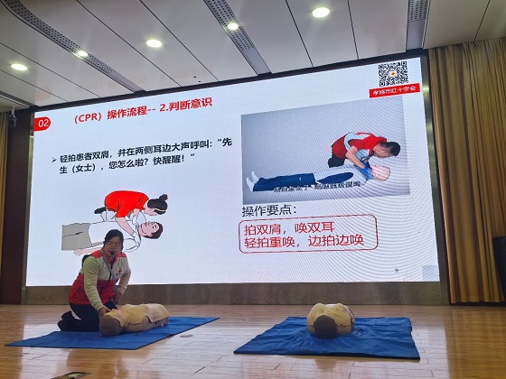 培训期间,授课团队紧扣职工安全健康核心需求,采用“理论解读+案例剖析+实操演练”三维教学模式,让培训内容既 “有高度”又“接地气”。澴川国投集团安全总监周勇以党的二十届四中全会安全生产精神为指引,结合相关法规条文与多起典型安全事故案例,深入解读企业安全生产主体责任的落实要点,梳理规避安全风险的关键路径,帮助学员构建系统的安全管理认知;学校副教授张晶聚焦职业病预防痛点,详细讲解职业病危害因素分类、常见职业病危害及防治措施,为职工健康安全筑牢“防护墙”;孝南区消防救援大队教员与学校医学基础部郑园老师通过现场演示、分组实操的方式,手把手教授心肺复苏、AED 使用、火灾报警与逃生、初期火灾扑救等实用技能,确保每位学员都能熟练掌握操作流程,实现“人人能上手、个个会操作”。