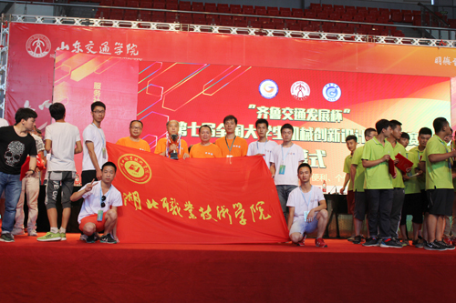 流金七月,捷报频传。7月26日—29日,“齐鲁交通发展杯” 第七届全国大学生机械创新设计大赛决赛在济南举行。经过审阅设计资料、观摩实物演示和进行作品答辩等程序,由机电工程学院朱志强、郭和伟老师指导,肖立昌、黄轩、李金涛、倪志强、王新胜学生组队参与设计的“钱币自动化分拣包装计数辨伪一体机”因创新性、新颖性、实用性突出,且科技含量高、功能强大、性价比高等绝对优势获得评审团一致好评,免复评直接进入决赛而荣获一等奖。校长朱虹亲临现场指导大赛,并为参赛选手鼓劲加油。