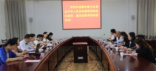 6月4日,在教育部留学服务中心国际处张海霞、苏和等的陪同下,新加坡卫生部人力资源规划与战略署署长潘佩丽(PhuaPuay Li)等一行7人来我校就“新加坡护理奖学金”项目(以下简称ANS项目)进行考察。学校党委副书记、校长朱虹,副校长李佳圣、杨立明,国际教育学院、护理学院负责人等相关同志热情接待了考察组一行。考察交流座谈会由李佳圣主持。