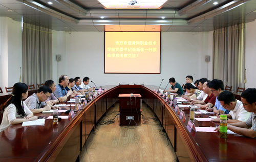 6月14日,黄冈职业技术学院党委书记张新佳、黄冈市委政研室(改革办)副主任陈红、黄冈职业技术学院副校长万俊华等一行7人来校考察。学校党委书记蔡诗红、副校长白梦清热情接待了张新佳一行,党政办公室、人事处、科研处、财务处、后勤处等相关职能部门负责人参加交流座谈会。
