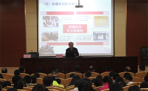 11月11日晚,学校党委书记蔡诗红在图书馆学术报告厅为全校师生代表作了题为《历史照亮明天——纪念中国人民抗日战争胜利70周年》的“形势与政策”报告。