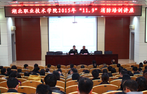 在全国第25个“119消防日”来临之际,为增强全校师生的消防安全意识,提高师生的灭火实战技能,积极预防火灾事故的发生,不断推进我校消防安全管理工作,11月9日下午,学校在图书馆学术报告厅举行了119消防培训讲座。孝感市消防支队法制宣传科科长刘伟应邀作专题讲座。学校全体在校领导、相关职能部门工作人员、各教学院学管负责人及全体辅导员、班主任、义务消防大队骨干成员等200多名师生参加了培训,讲座由保卫处副处长汪胜祥主持。