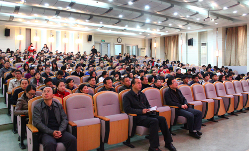 孝感市消防支队法制宣传科科长刘伟以“参于社区消防,建设平安家园”为主题,紧密结合学校消防工作实际,从“一懂、三会、四个能力”三方面向大家重点讲授了消防安全管理责任、消防检查制度、防火检查重点、初期火灾的扑救程序、疏散逃生常识和消防安全教育等消防安全管理知识。“一懂”是指要懂得消防安全管理责任,切实做到人人参与,人人履行消防安全职责,确保消防安全责任制真正落到实处。“三会”即要会正确报火警、会使用灭火器材扑救起初期火灾、会疏散逃生。“四个能力”即检查消防火灾隐患能力、扑救初期火灾能力、组织疏散逃生能力和消防宣传教育能力。刘科长的报告时间虽短,但内容贴近实际,对提高师生的消防意识及自救能力具有很强的指导意义。
