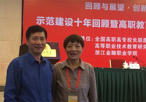 11月7日-8日,由全国高职高专校长联席会议、中国高等职业技术教育研究会及浙江金融职业学院联合主办的“示范建设十年回顾暨高职教育创新发展研讨会”在杭州召开。教育部职成司副巡视员葛维威、教育部职成司高职高专处处长林宇、国家教育咨询委员会委员黄达人、中国高教学会产学研合作教育协会会长朱传礼、中国高等教育学会会长瞿振元、国家示范性高职院校建设工作协作委员会会长李进、全国高职高专校长联席会主席董刚等专家莅会指导。学校校长朱虹应邀参加了会议。