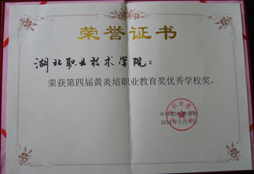 受教育部委托,由中华职业教育社、中国职业技术教育学会组织的第四届黄炎培职业教育奖评选活动,经过评审委员会认真评审,共评选出“黄炎培优秀学校奖”59所,“黄炎培杰出校长奖”80名,“黄炎培杰出教师奖”110名,“黄炎培优秀理论研究奖”8名,“黄炎培杰出贡献奖”1名。我校荣获“黄炎培优秀学校奖”,是湖北省获得该奖项的唯一高职院校。