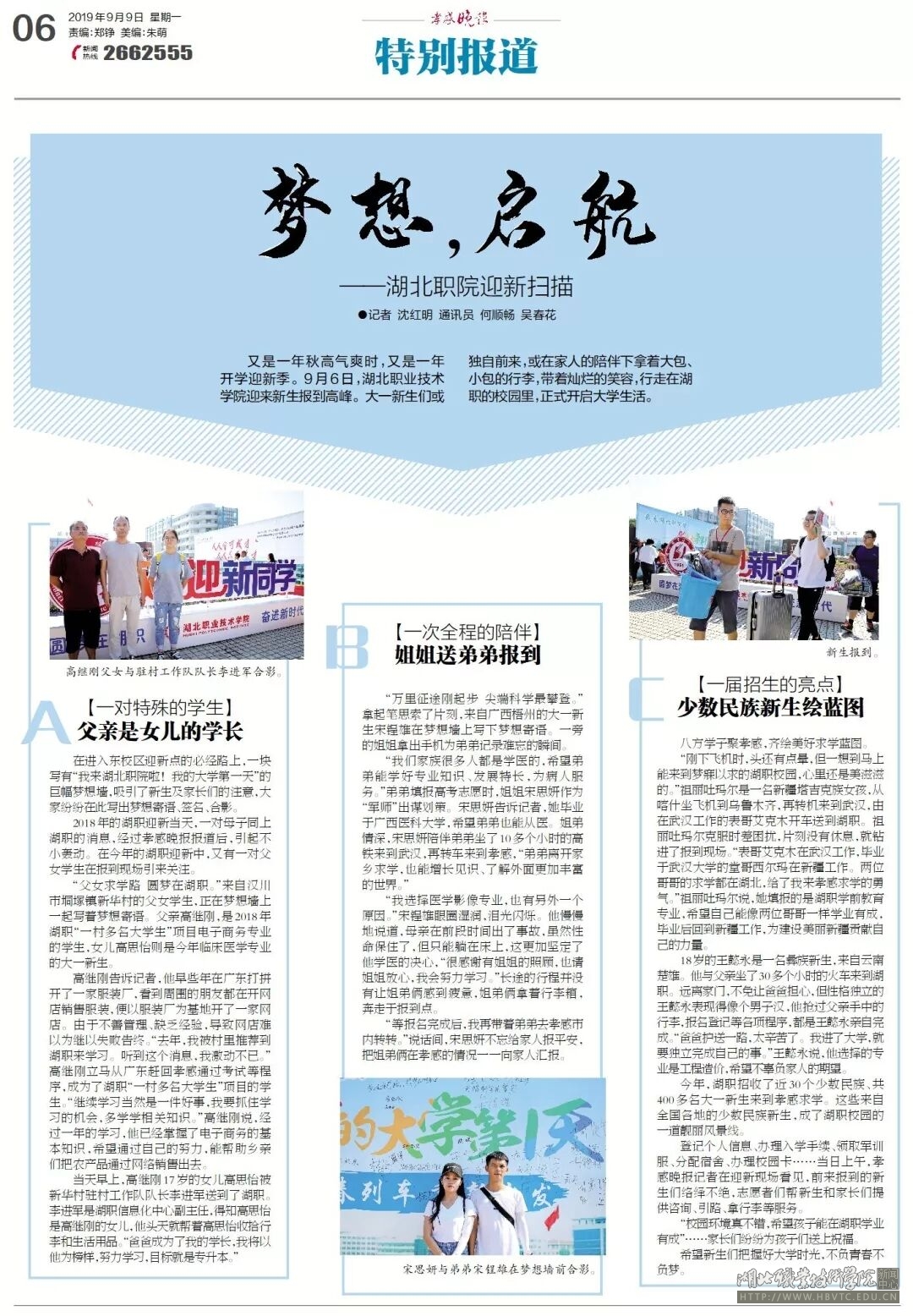【孝感晚报】梦想,起航——湖北职院迎新扫描