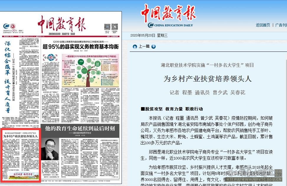郑茜是湖北职业技术学院电子商务专业“一村多名大学生”项目在读生,同他一样,近1000名农民大学生在该校学习致富本领。