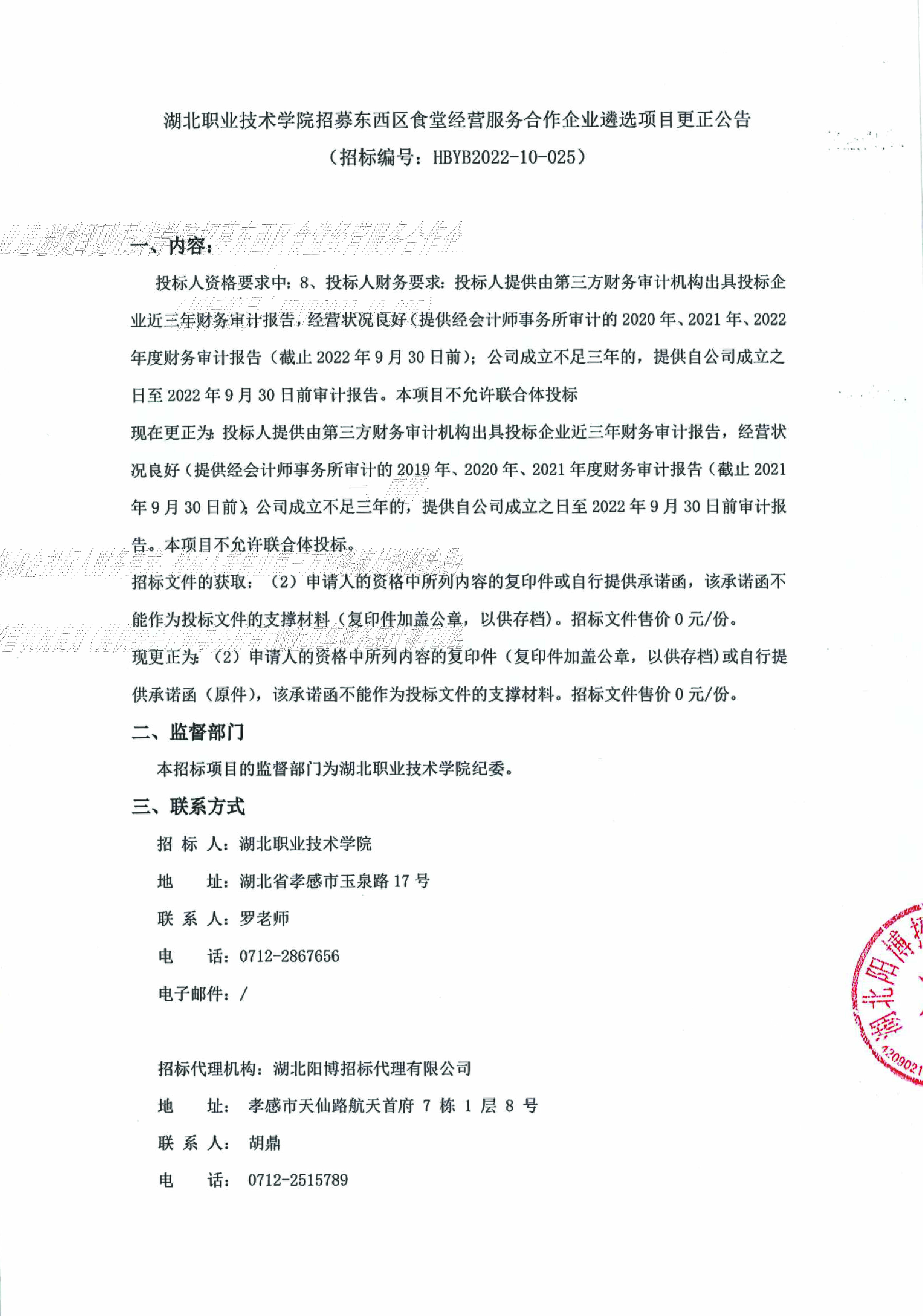 湖北职业技术学院招募东西区食堂经营服务合作企业遴选项目更正公告.pdf