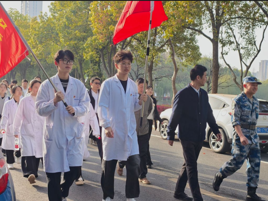 (本网讯 梅运悦 杨玺 何顺莉)4月2日上午8点,口腔医学院党总支书记周建平、学工党支部书记张玮带领学工党支部全体党员、入党积极分子、"爱心口腔"志愿服务队、"遵"道"毅"行志愿宣讲团共54名师生,步行4.8公里前往孝感市革命烈士陵园,开展“缅怀革命先烈——传承红色革命精神”主题教育活动。