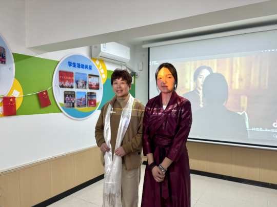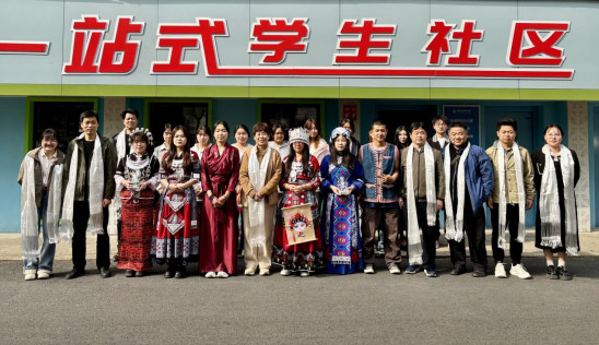 苗族学生刘萍以生动的语言讲述苗族苗年的历史与习俗,展现对自然的敬畏与对丰收的祈愿;土家族学生雷金讲解民族非物质文化遗产项目,土家织锦(西兰卡普)、土家摆手舞、土家山歌、梯玛歌等,领略“以歌养心、以舞传情”的精神。藏族学生牛金花跳起经典舞蹈《吉祥如意》,舞姿轻盈如云,尽显雪域儿女对幸福生活的礼赞,赢得现场阵阵掌声。