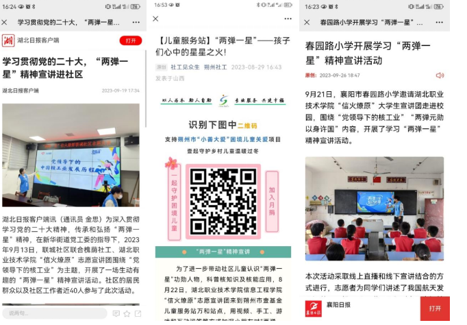 在过去两年里,团队以“个人+团体”的宣讲方式,在湖北孝感、山西朔州、云南镇雄等全国多地,面向社区居民、企业职工、青少年儿童等多类群体,融合数字直播、绘画艺术、积木游戏等创新形式,开展学习、宣讲、志愿服务42场,受众近2500人,融合了社区计划、社会实践、寒暑假托管班等形式,为民生实事贡献青春力量。相关志愿宣讲活动得到当地主流媒体报道。