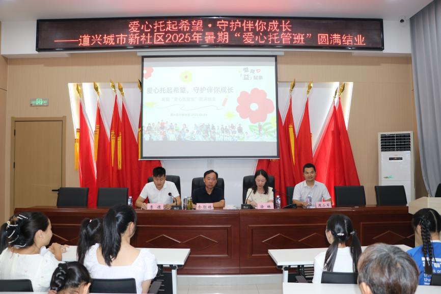 (本网讯 支照淳 周小军)8月1日上午,孝南区闵集乡道兴社区2025年暑假“爱心托管班”结业仪式在社区党员群众服务中心举行。我校教育与艺术学院“青苗筑梦”大学生志愿服务队用专业与热忱陪伴社区儿童度过充实假期,生动诠释了当代大学生的青春担当。
