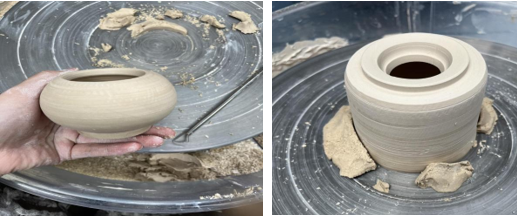 课程涵盖了从基础到进阶的多种陶艺成型与装饰技法,不仅注重陶艺技能的传授,更强调创作思维的培养:拉坯课上,同学们在转动的轮盘上感受泥料在手中的变化,体会成型的最初魅力。