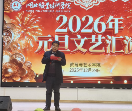 12月29日晚,湖北职业技术学院教育与艺术学院“同心向朝阳”2026年元旦文艺汇演在卧龙校区大礼堂举行,学校相关职能部门、教学院代表、教育与艺术学院师生齐聚一堂,以昂扬向上的精神风貌和丰富多彩的文艺节目,共同迎接2026年的到来。