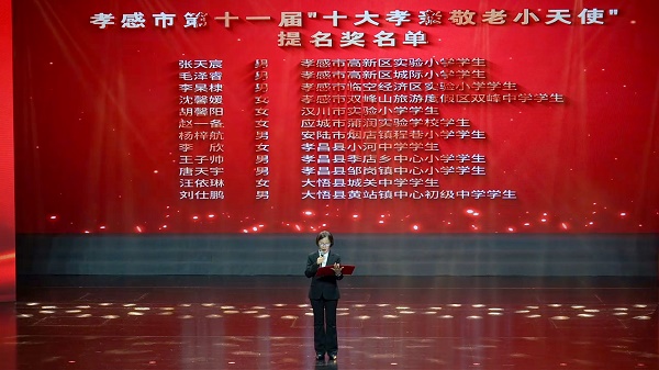 活动同时公布孝感市第十四届“十大孝子”和孝感市第十一届“十大孝亲敬老小天使”提名名单。我校优秀校友、全国敬老爱老助老模范人物、孝感市第十一届“十大孝子”熊文文,现场发布孝感市第十四届“十大孝子”提名奖名单。