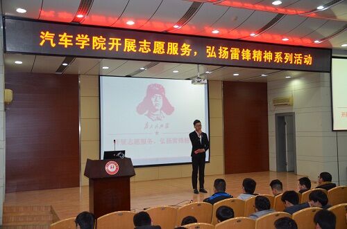 会上,各班团支部代表以PPT展示的形式,图文并茂,一起追忆雷锋同志成长历程和雷锋精神的内涵、“感动中国十大人物”徐本禹的感人故事,以及身边的感动——谭之平、李燕等典型事迹,一个个鲜活而质朴的案例,深深打动着年轻学子的心。郭自鹏勉励全体汽车学子,赶快行动起来,从点滴做起、从身边的小事做起,以实际行动为学校的“两创”建设目标贡献青春力量和智慧,同时就“我爱我家”志愿服务活动作了具体安排。